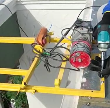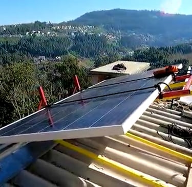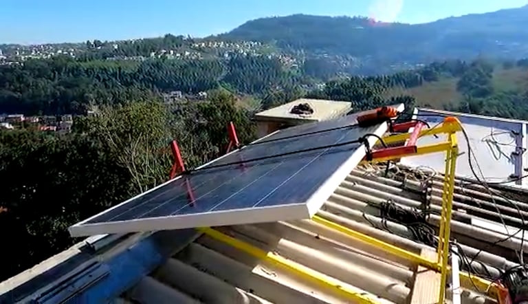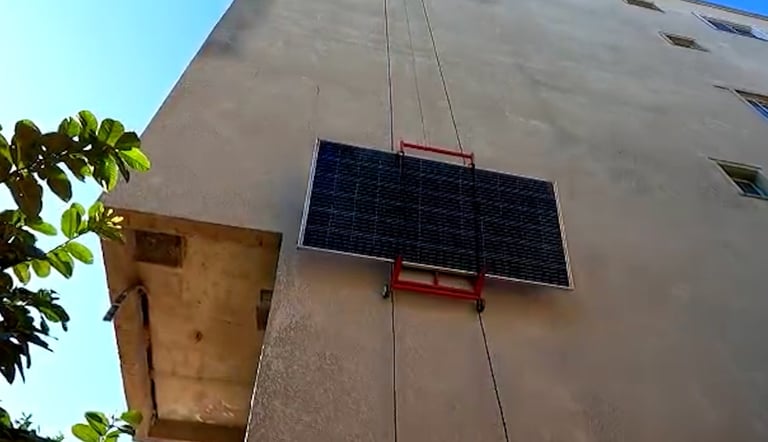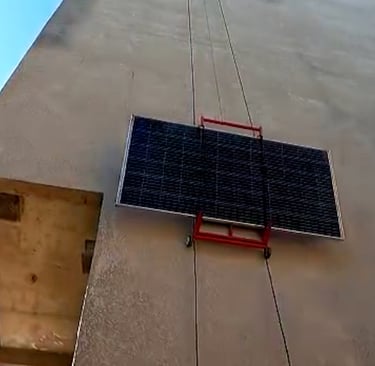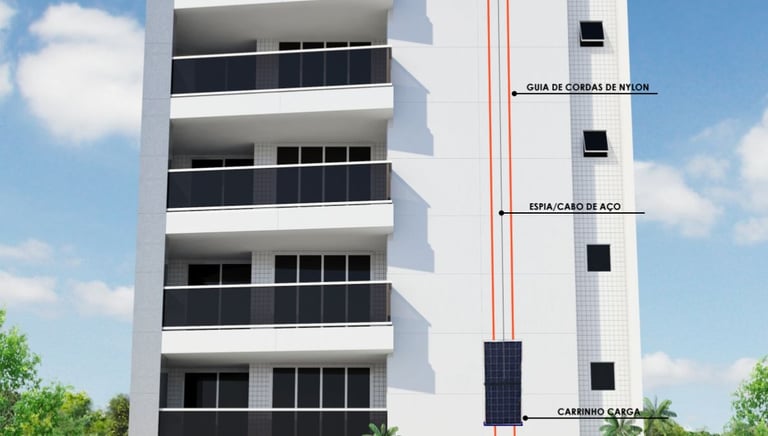 Capacidade: Sobe até 25 metros, transportando até 3 placas solares por vez.